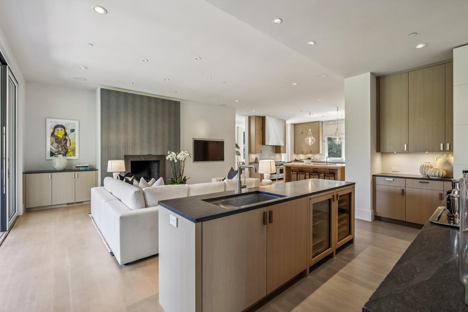 - The family room has a gas fireplace, as well as doors leading to a patio and the exterior. A built-in bar serves as a fantastic space for a quick beverage or entertaining surface. This area has a Sub-Zero undercounter wine refrigerator, beverage refrigerator, and a bar sink. A dining nook is separated by a wall but is adjacent to the kitchen, making casual dining easy.