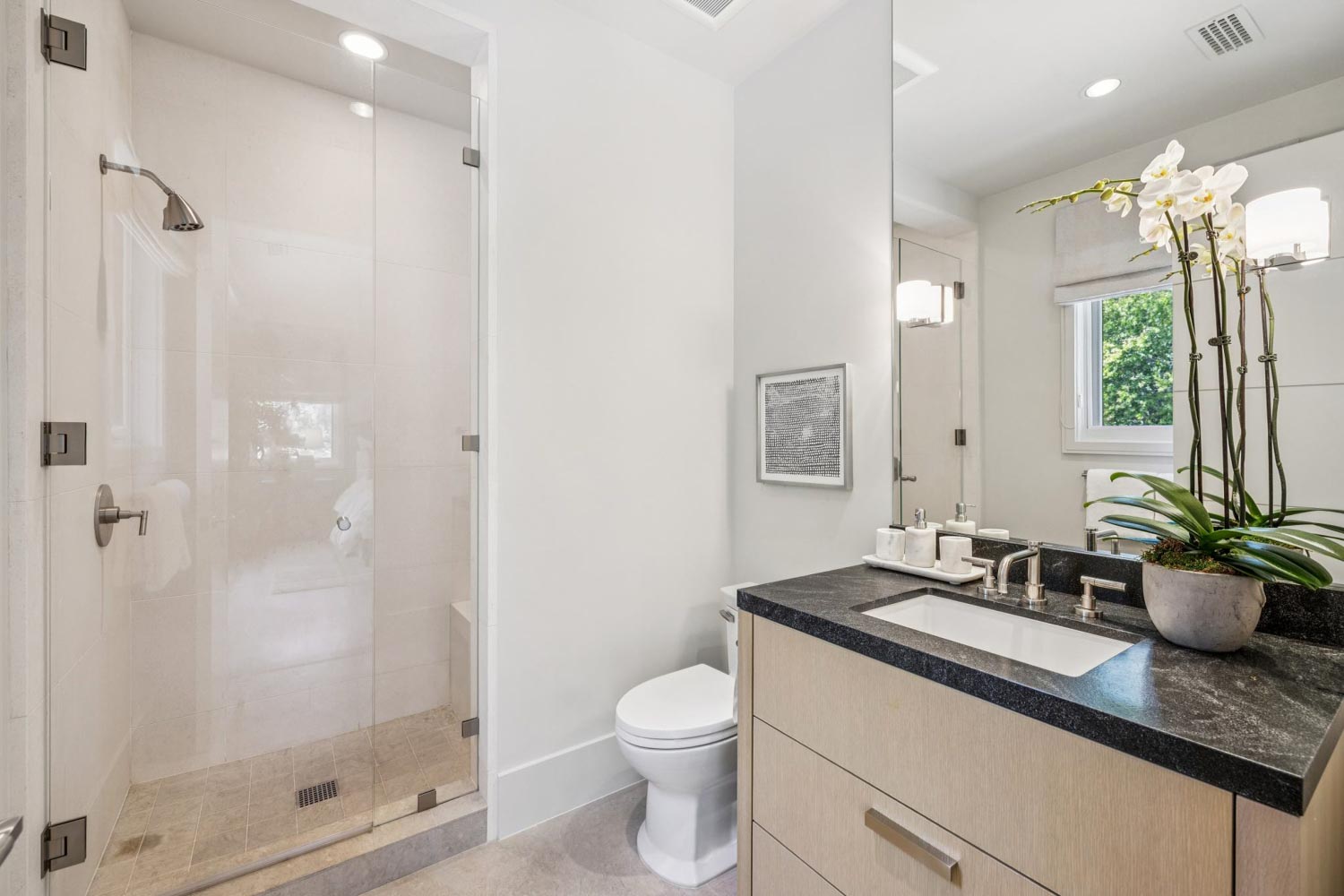 - Three additional spacious bedrooms, each with en suite bathrooms and built-out closets. One bedroom has a shower over the bathtub, and the others offer showers.